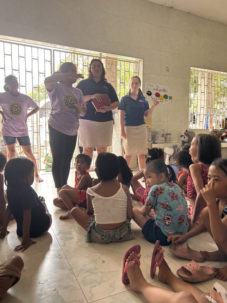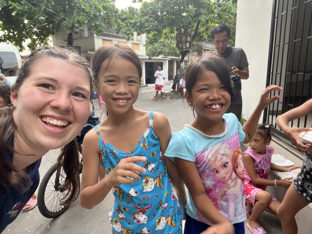 As we were driving there, I don’t think I realized how surreal this experience would be. Unlike most cemeteries in America, this one covered over 130 acres in the heart of the city. Many of the graves were covered by stone or marble buildings, almost imitating a “home” for the people’s loved ones in the afterlife. The only tombs that were not inhabited were those of the rich and famous of Manila, such as the previous president and many mayors. As we rode up to the street we would be staying on, I saw many people sitting on the porches of the tombs and the children running near the van, most likely confused of who we were. Most of the gates in front of the tombs were broken into so that the people would have somewhere to live. The children that I helped with ranged from the ages of 1-7 years old. We gathered in a very large room, with cold tile flooring and an enclosed grave in the middle. The children just wanted to be held and talked to; one girl I tried talking to was very shy at first. But I held my hand out and she held it and would not let go. She eventually warmed up to me and started smiling and even wrapped around my arm. The apparent need of a deeper connection with the children proves that man is not what was needed there today- it was Jesus Christ. We were able to feed as many of the children as we could, with a little meal of rice and some meat. To see a living, breathing soul walking and living among the dead was a very surreal scene. It was hard to fully even comprehend that this is these children’s whole world – cracked tile floors, broken bars, large graves and little to no food or water. I’m truly grateful to have been used if the Lord to love on these children. The fact that struck me the most was that those two hours was the only time I will ever see that precious girl in my life. And in reality, I will forever ask myself, “ Did I show her Jesus? Did I do enough? Is she ok?” Today is a day I will never forget. After the cemetery, we were able to meet with the Tulabots (Dr. Arvin, Dr. Ruth) and their church family and prepare our lessons and songs for the upcoming VBS! Our prayer is that the weather will be good and that 1,000 children will attend both days! Thank you for your continued prayers and support as we are striving to be the hands and feet of Jesus in the Philippines!